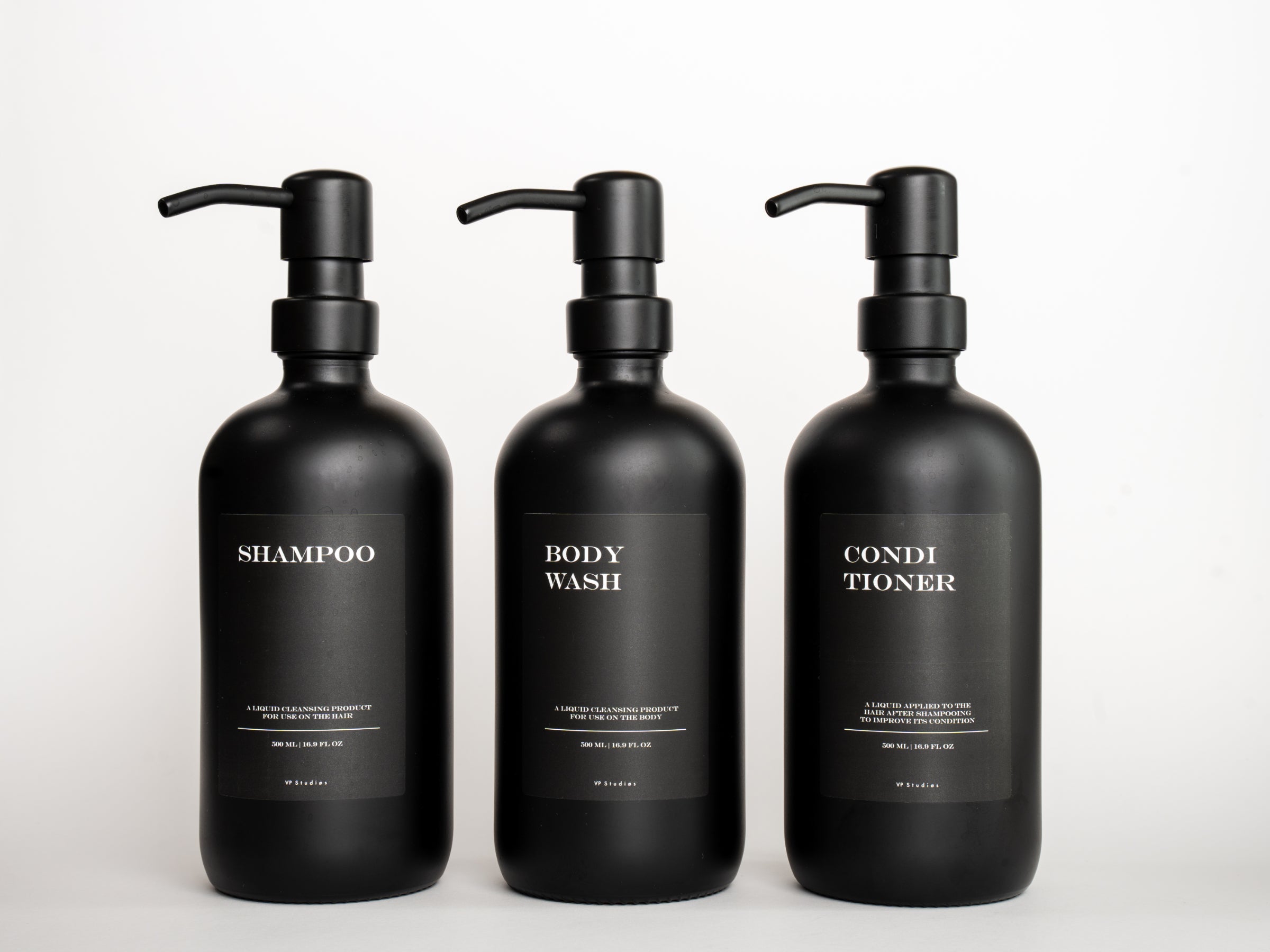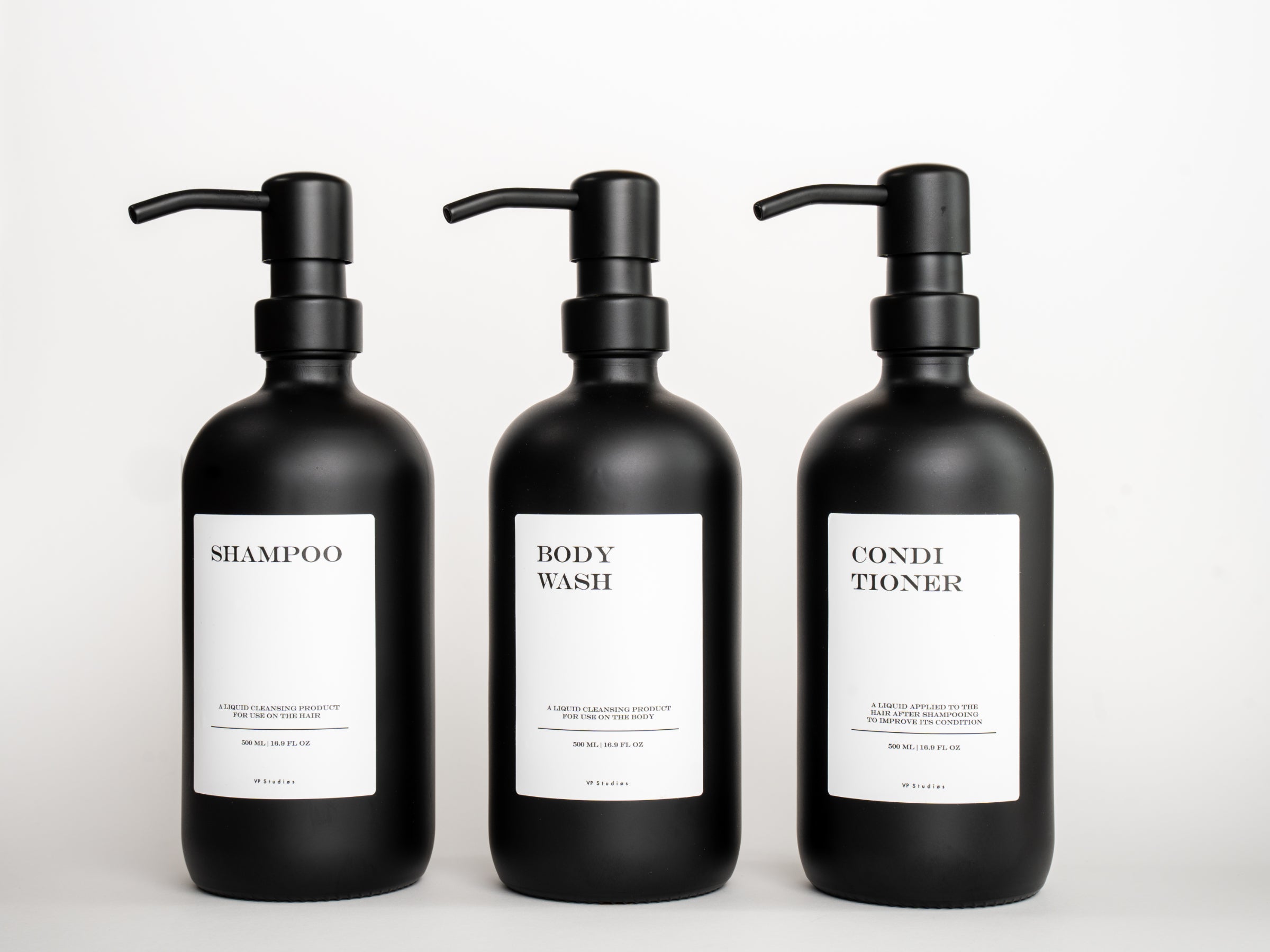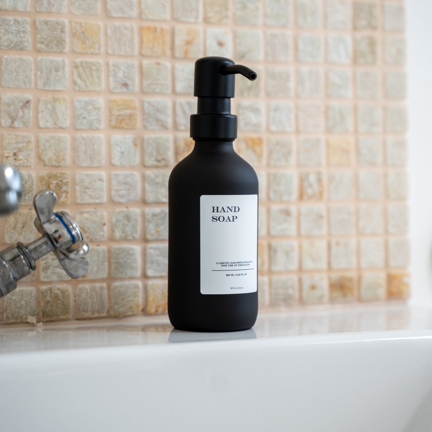 Erlebe die zeitlose Schönheit unserer Seifenspender mit schwarzen oder weißen Etiketten